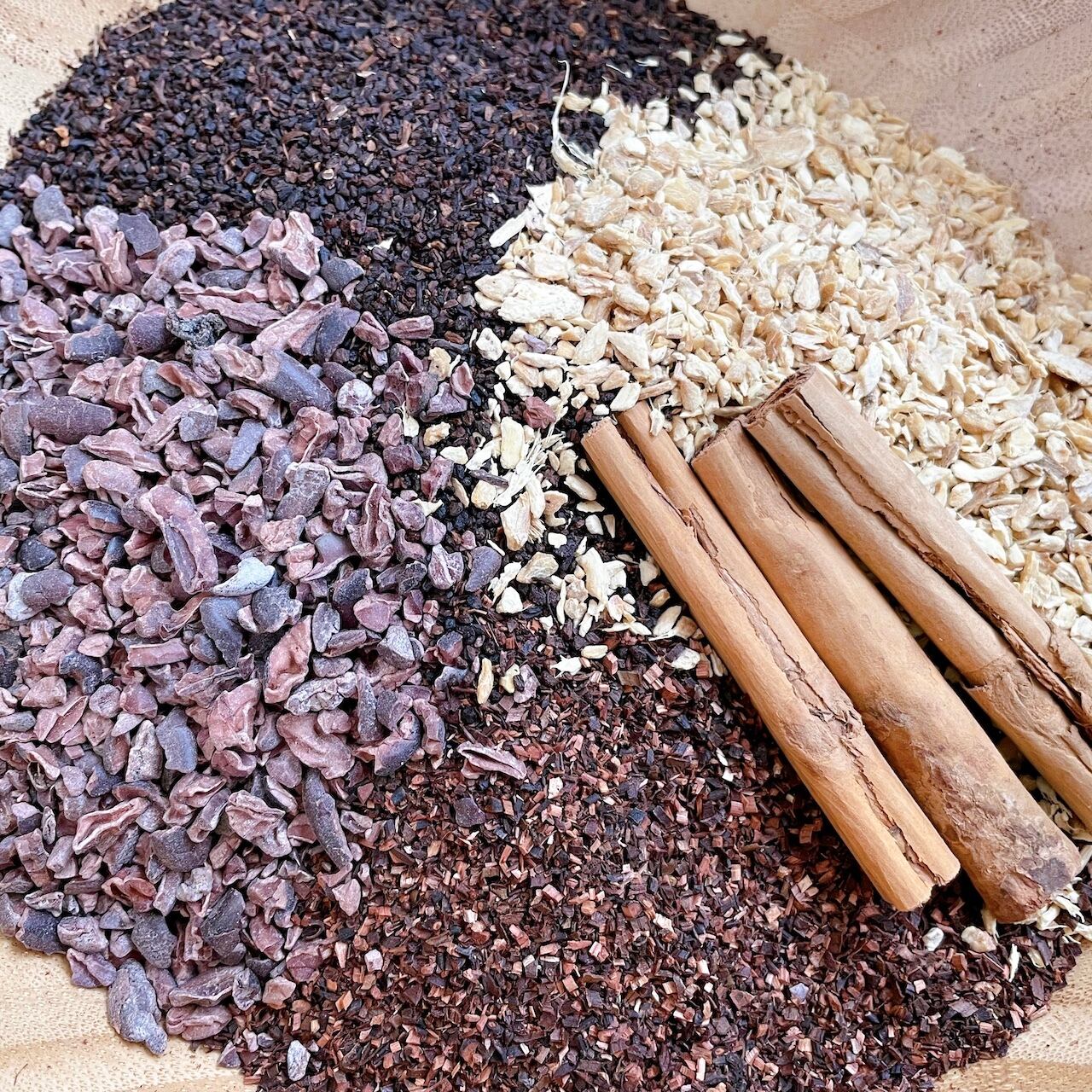 有機ハニーブッシュ、有機ジンジャー、有機カカオニブ、有機セイロンシナモン